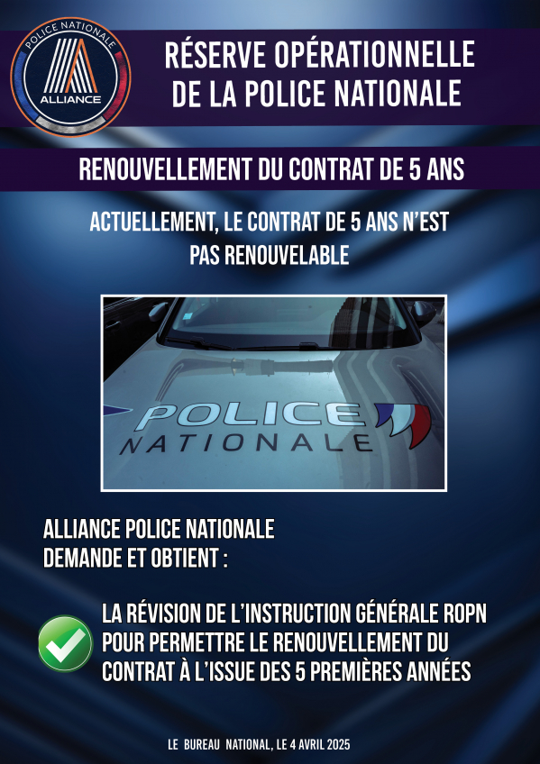 La révision de l’Instruction Générale ROPN pour permettre le renouvellement du contrat à l’issue des 5 premières années.